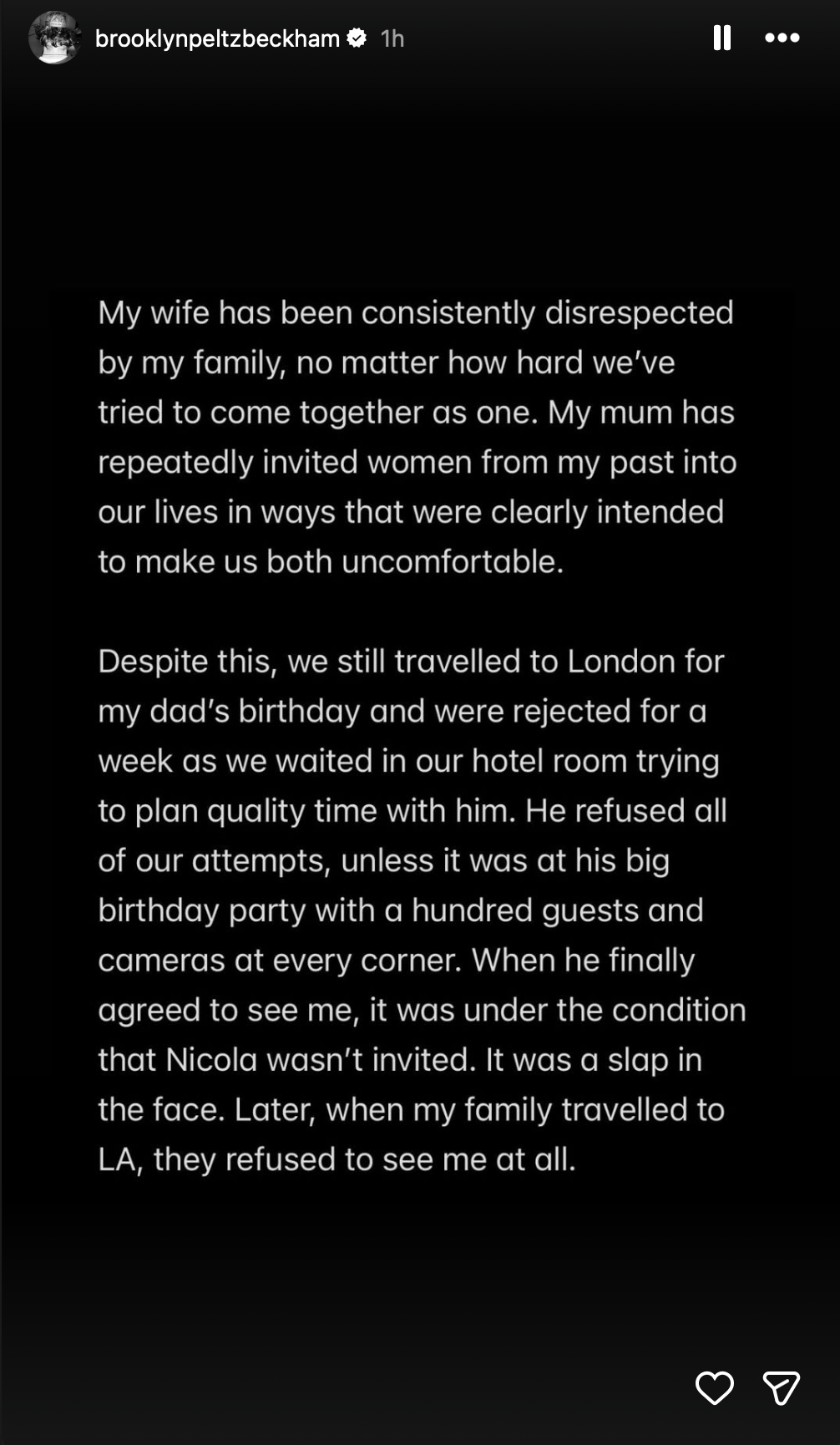 In his statement, Brooklyn emphasized his desire for a life free from external influences, focused on peace, privacy, and happiness for himself and Nicola.
