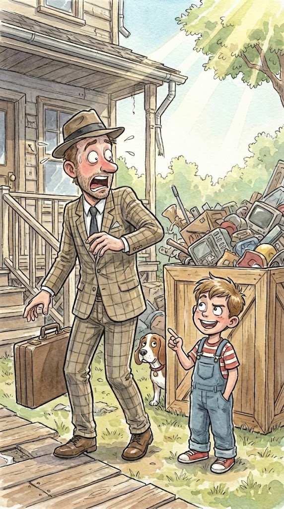 When asked if his parents will be available soon, Johnny humorously explains that they might be detained due to his mix-up with household items.
