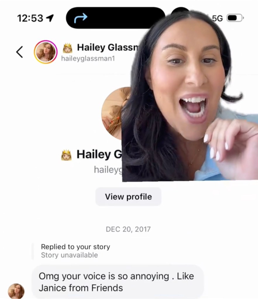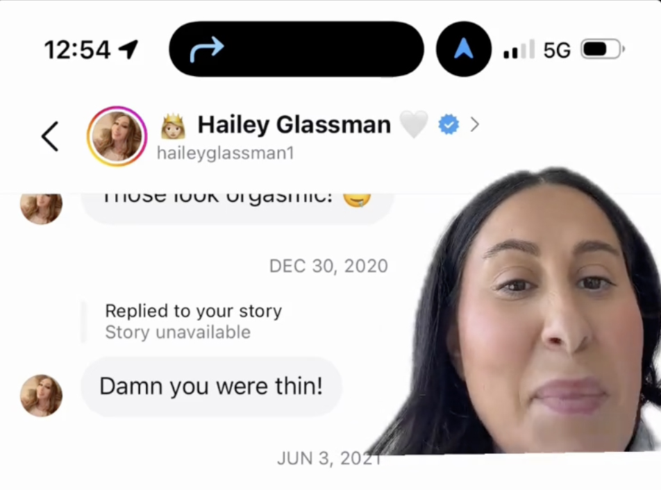 Oshry shared an initial message from Glassman, criticizing Oshry's voice by comparing it to Janice from "Friends." Further messages allegedly from Glassman focused on Oshry's weight, with comments suggesting the use of medication and plastic surgery.