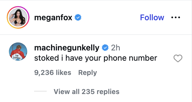 Under Fox's recent Instagram post, MGK commented positively, indicating he still has her contact information—implying continued friendly relations between the two.