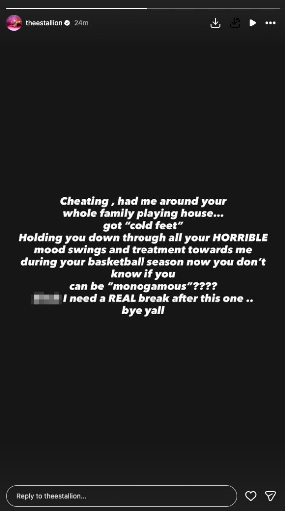 The announcement followed Megan's social media post accusing Klay Thompson of cheating. She mentioned feelings of betrayal and his inability to commit to monogamy.