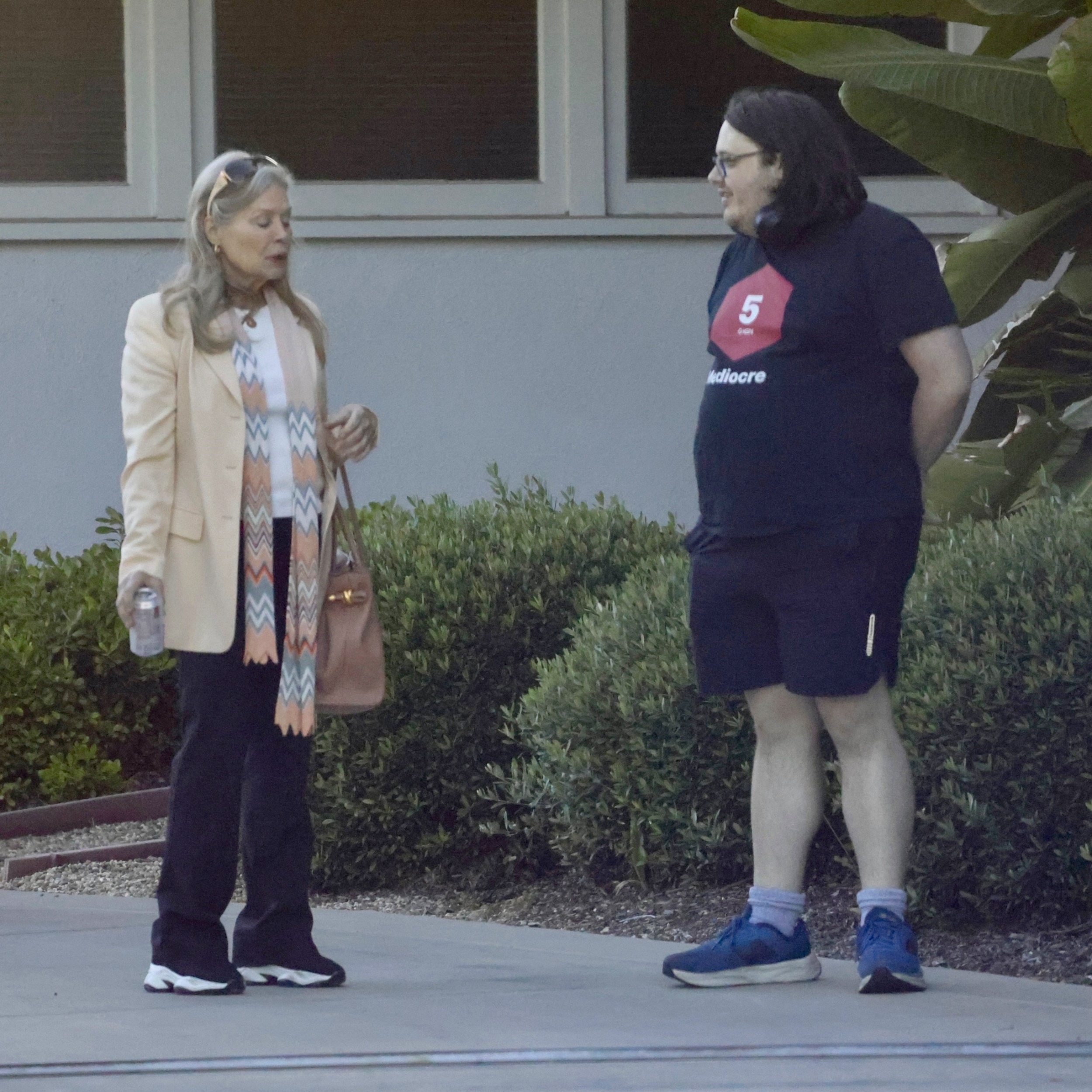 D'Angelo, 74, dressed casually in black pants and a beige blazer, complemented by a colorful scarf and gold sunglasses. She carried a tan leather handbag and wore sneakers. Pacino opted for a navy blue jacket, black pants, and sneakers, finishing his look with round sunglasses, a scarf, and a beanie cap.